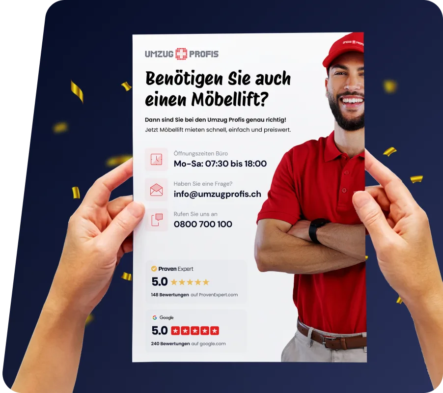 Ja, unser Möbellift-Service eignet sich sowohl für private als auch gewerbliche Umzüge, Renovierungen oder den Transport schwerer Gegenstände.